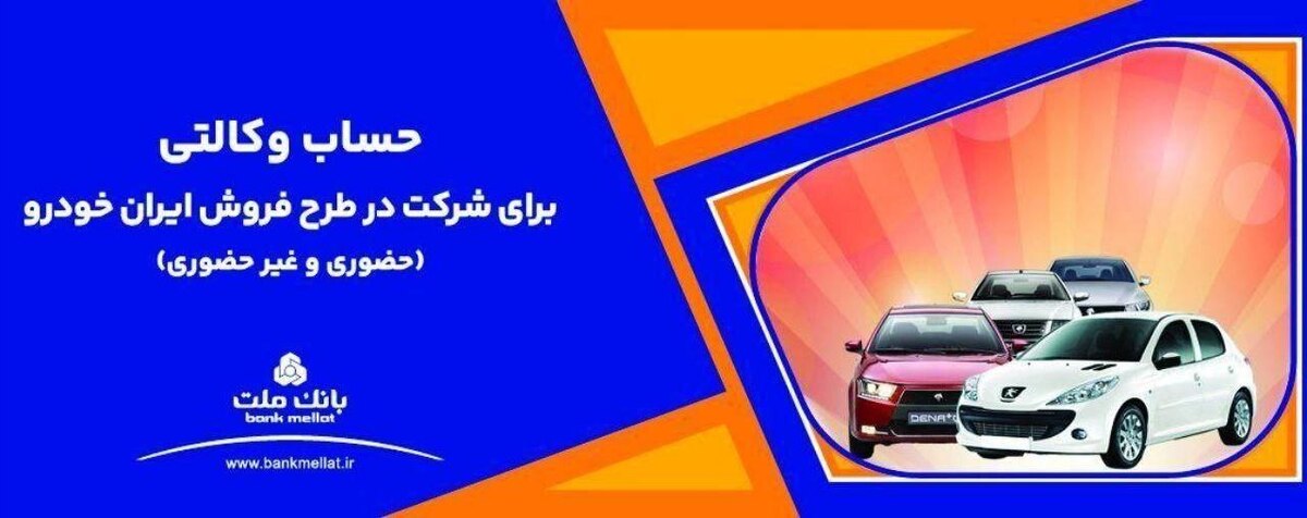بانک ملت برای دور جدید فروش محصولات شرکت ایران خودرو، خدمت حساب وکالتی را به متقاضیان ارائه میکند.