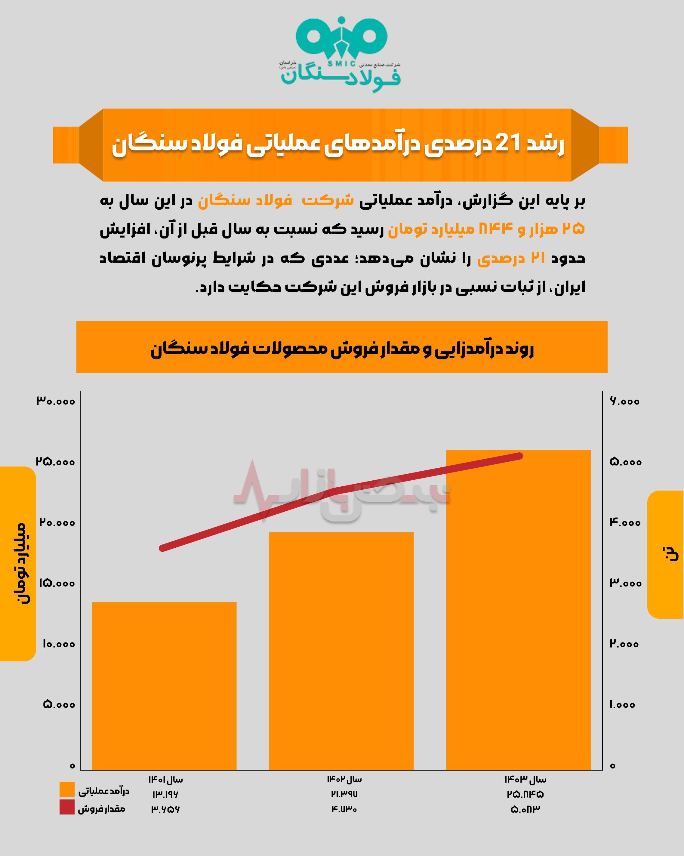 اینفوگرافی / رشد ۲۱ درصدی درآمد‌های عملیاتی فولاد سنگان