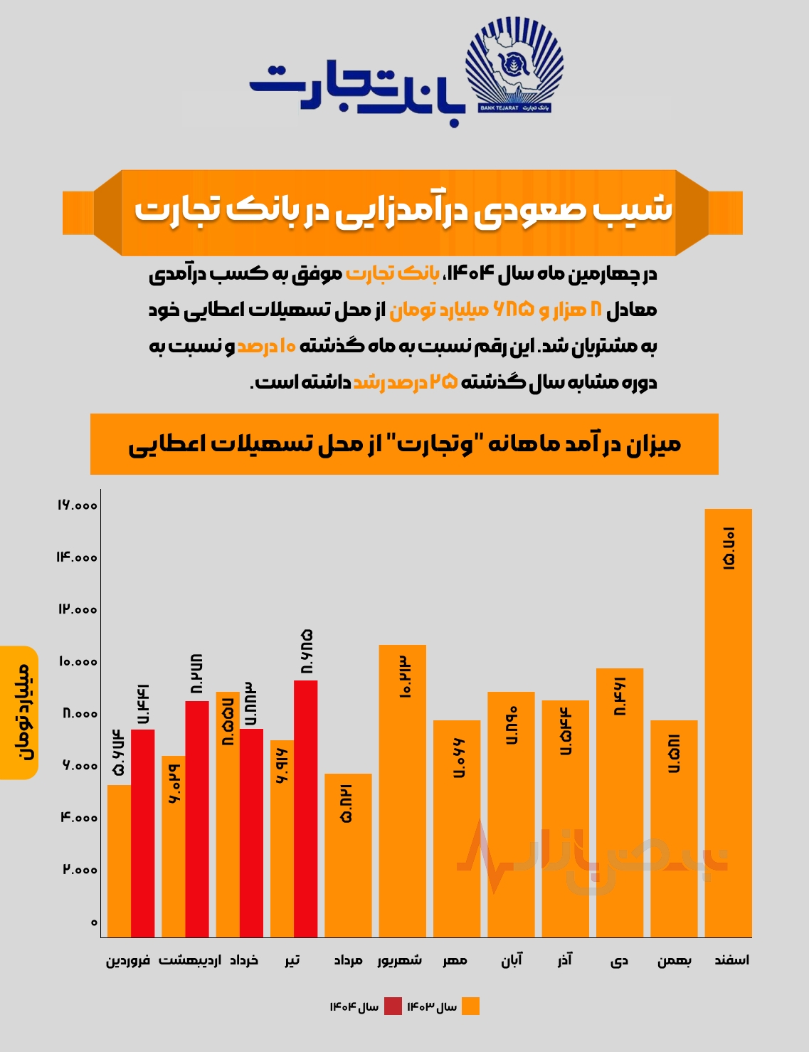 اینفوگرافی / شیب صعودی درآمدزایی در بانک تجارت