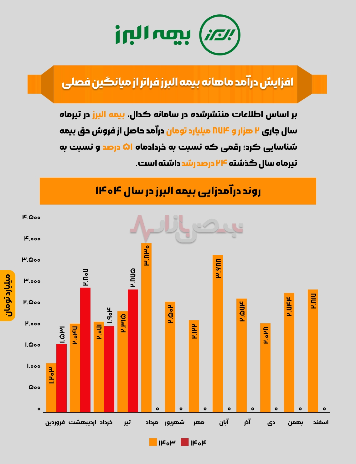اینفوگرافی / افزایش درآمد ماهانه بیمه البرز فراتر از میانگین فصلی