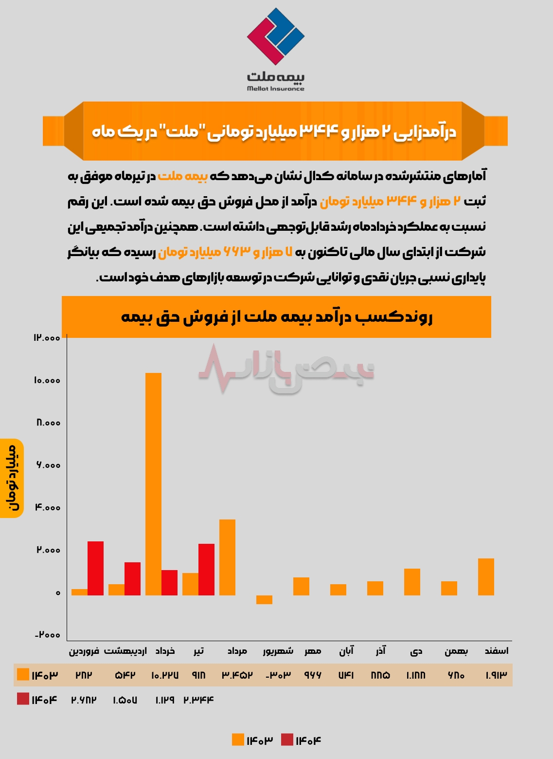 آمارهای منتشرشده در سامانه کدال نشان می‌دهد که بیمه ملت در تیرماه موفق به ثبت ۲ هزار و ۳۴۴ میلیارد تومان درآمد از محل فروش حق بیمه شده است. این رقم نسبت به عملکرد خردادماه رشد قابل‌توجهی داشته است. همچنین درآمد تجمیعی این شرکت از ابتدای سال مالی تاکنون به ۷ هزار و ۶۶۳ میلیارد تومان رسیده که بیانگر پایداری نسبی جریان نقدی و توانایی شرکت در توسعه بازارهای هدف خود است.