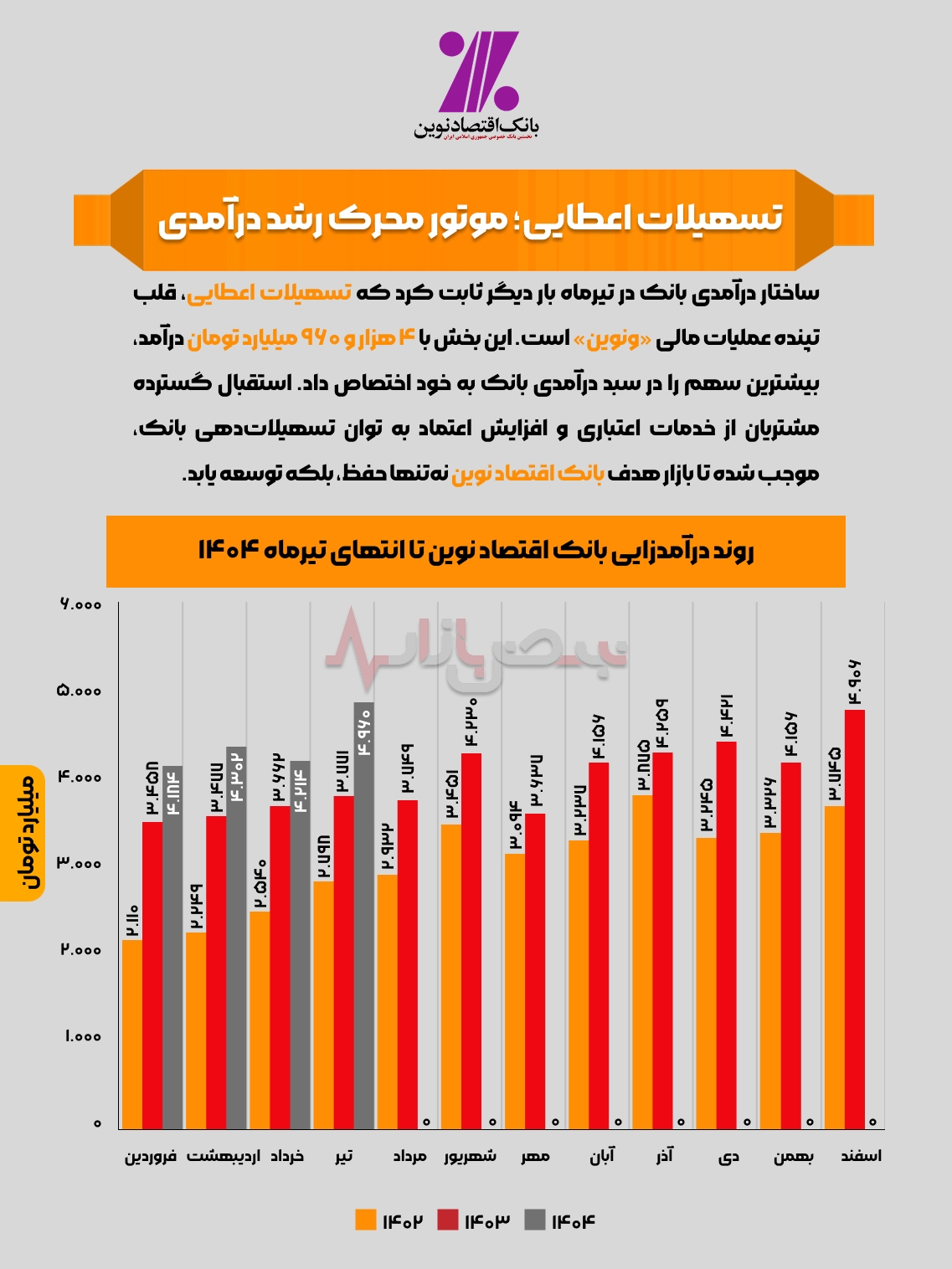 اینفوگرافی / تسهیلات اعطایی؛ موتور محرک رشد درآمدی بانک اقتصاد نوین