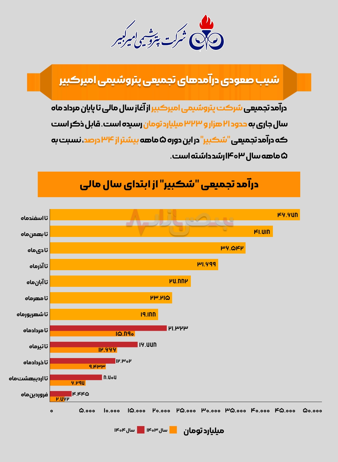 اینفوگرافی / شیب صعودی درآمدهای تجمیعی پتروشیمی امیرکبیر