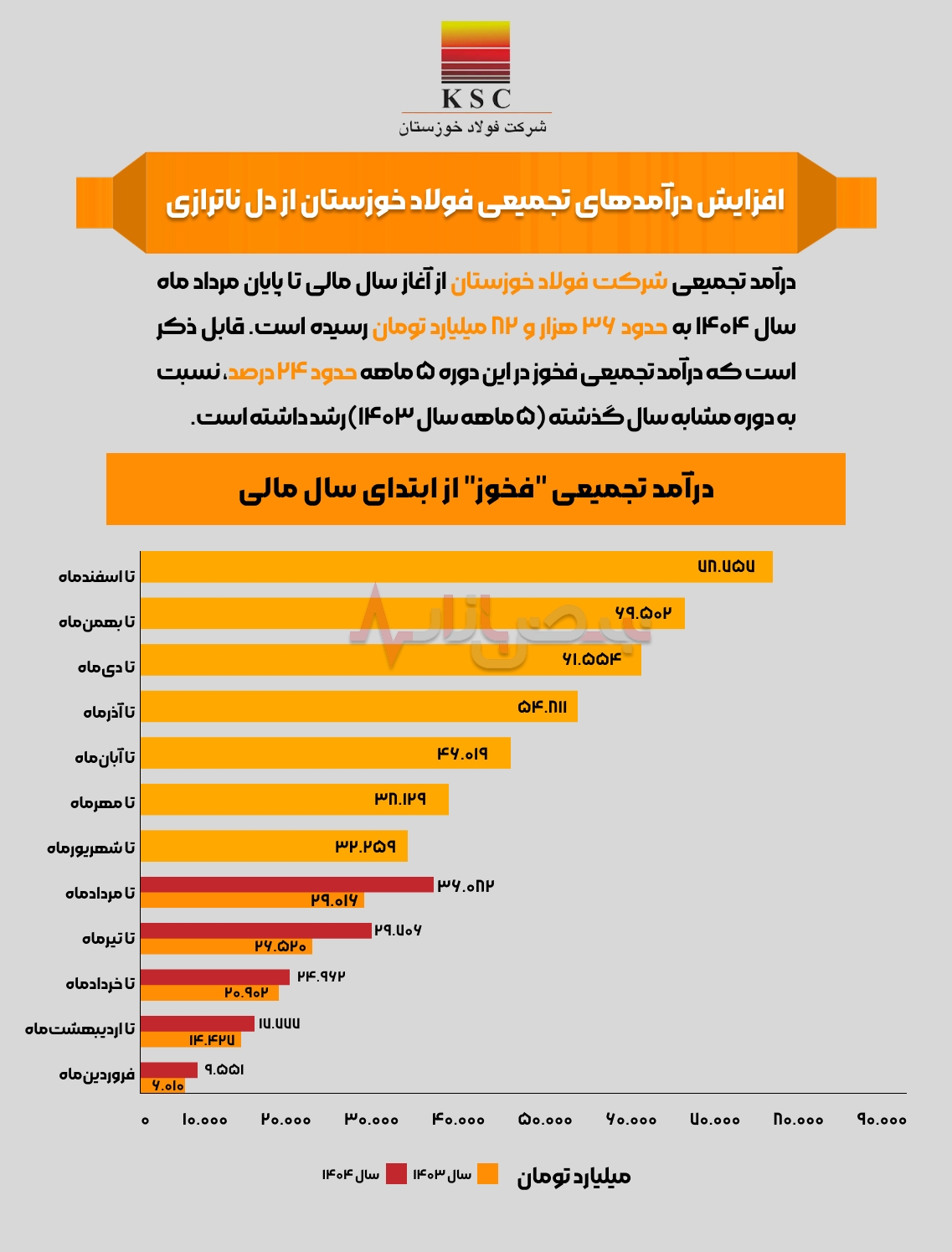 اینفوگرافی / افزایش درآمدهای تجمیعی فولاد خوزستان از دل ناترازی
