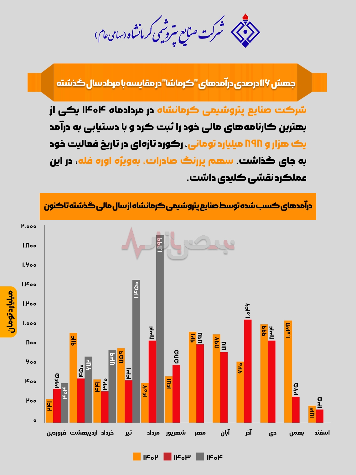 شرکت صنایع پتروشیمی کرمانشاه در مردادماه ۱۴۰۴ یکی از بهترین کارنامههای مالی خود را ثبت کرد و با دستیابی به درآمد یک هزار و ۸۹۸ میلیارد تومانی، رکورد تازهای در تاریخ فعالیت خود به جای گذاشت. سهم پررنگ صادرات، بهویژه اوره فله، در این عملکرد نقشی کلیدی داشت.