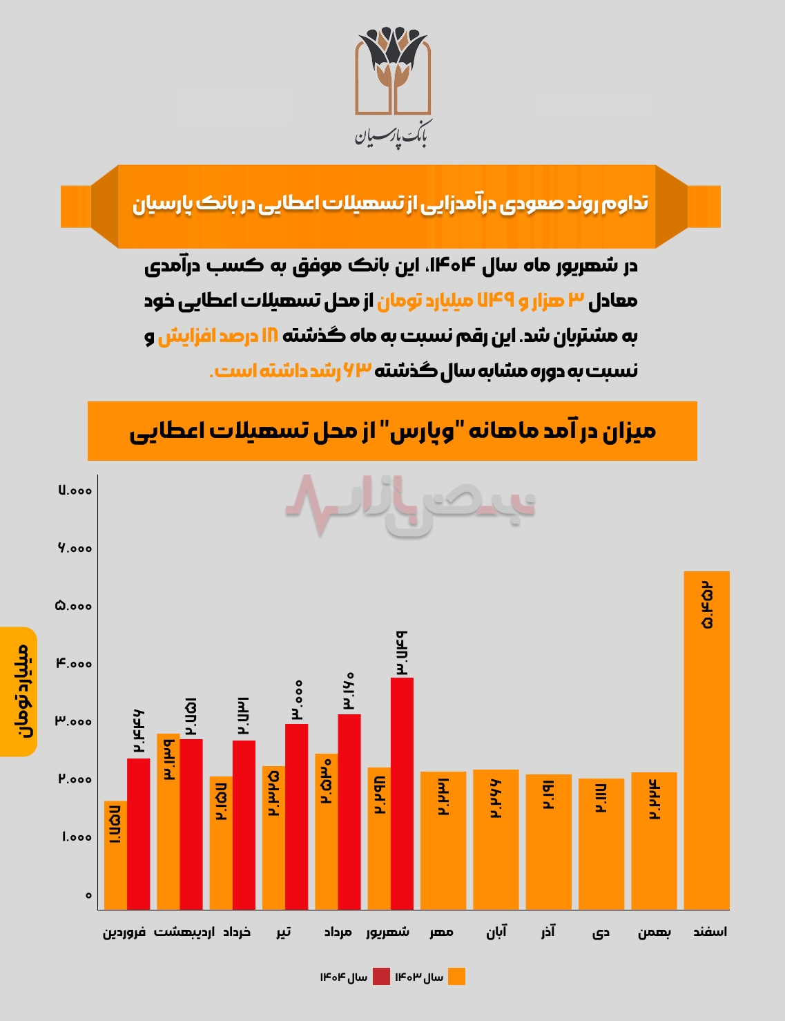 اینفوگرافی / تداوم روند صعودی درآمدزایی از تسهیلات اعطایی در بانک پارسیان