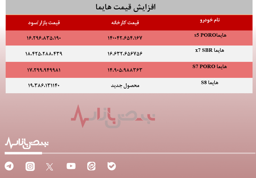 هایما در مسیر گرانی/ ایران خودرو هایما را هم گران کرد+جدول