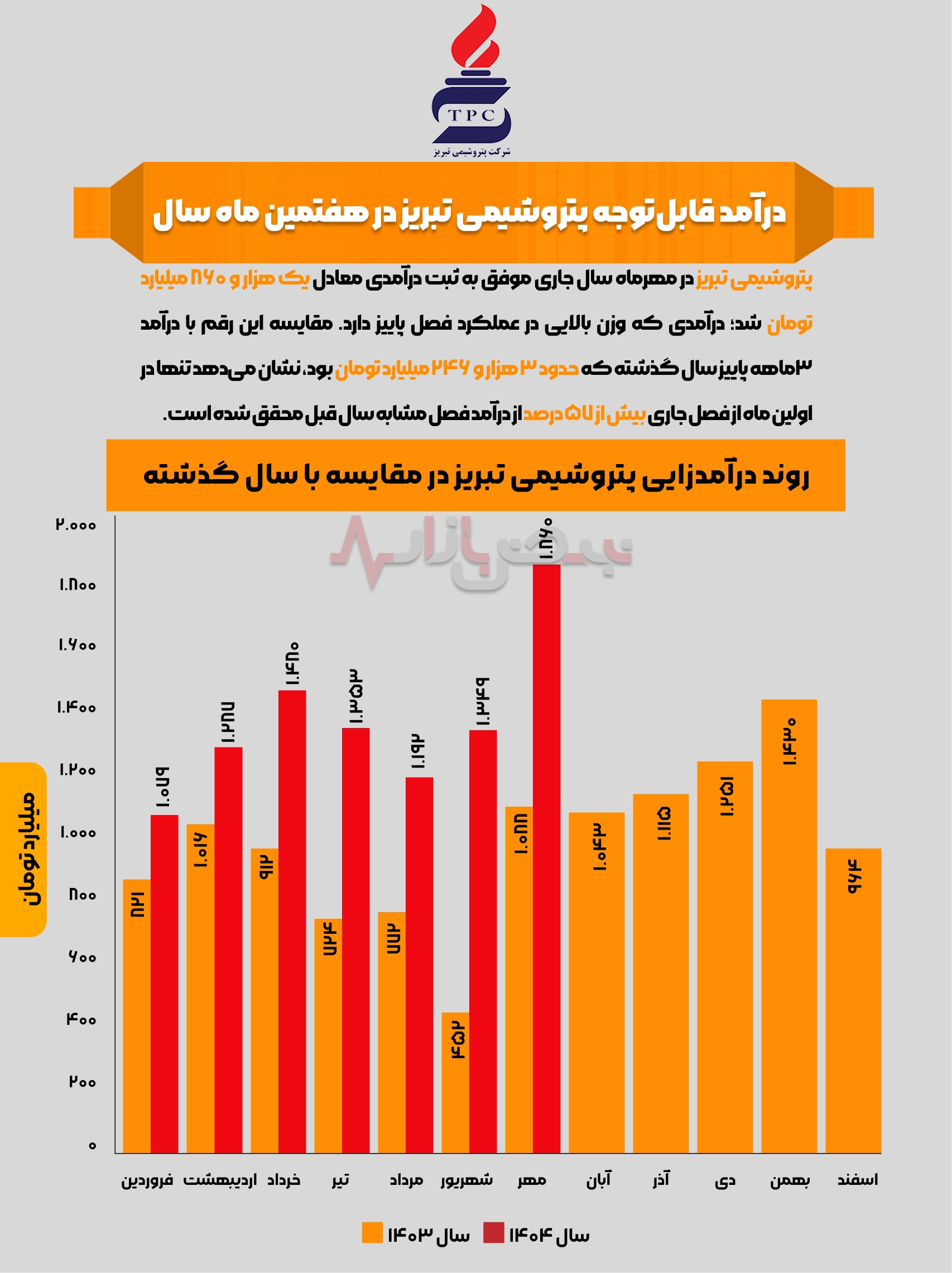 اینفوگرافی / درآمد قابل‌توجه پتروشیمی تبریز در هفتمین ماه سال