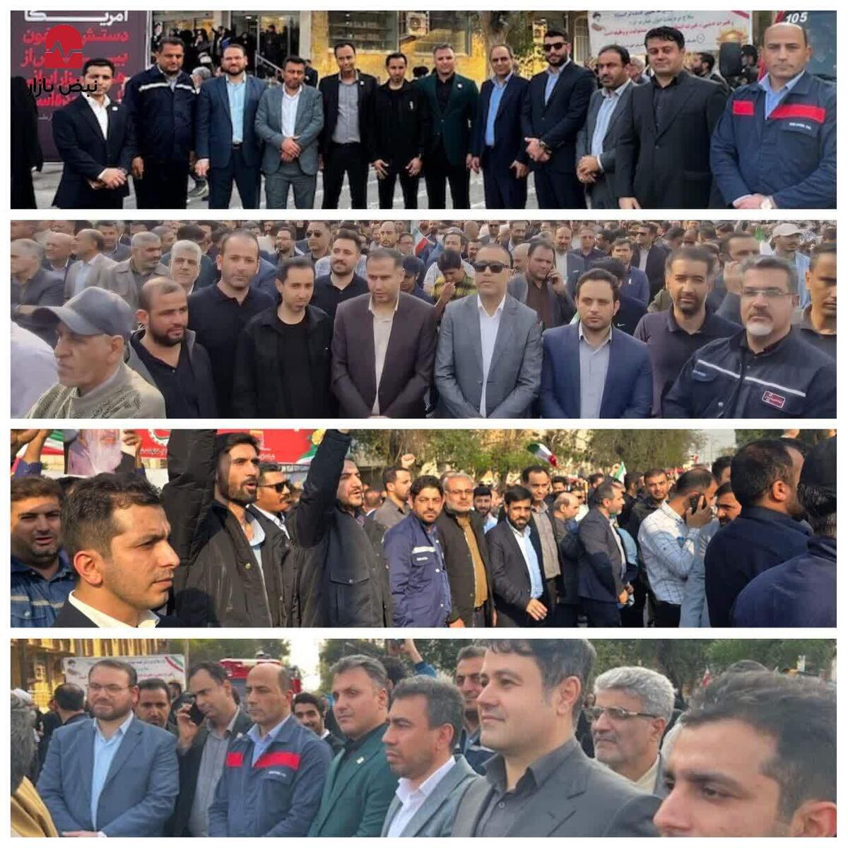 حضور مدیرعامل، رئیس هیئت مدیره و جمعی از کارکنان شرکت فولاد اکسین در تجمع ۲۲ دی
