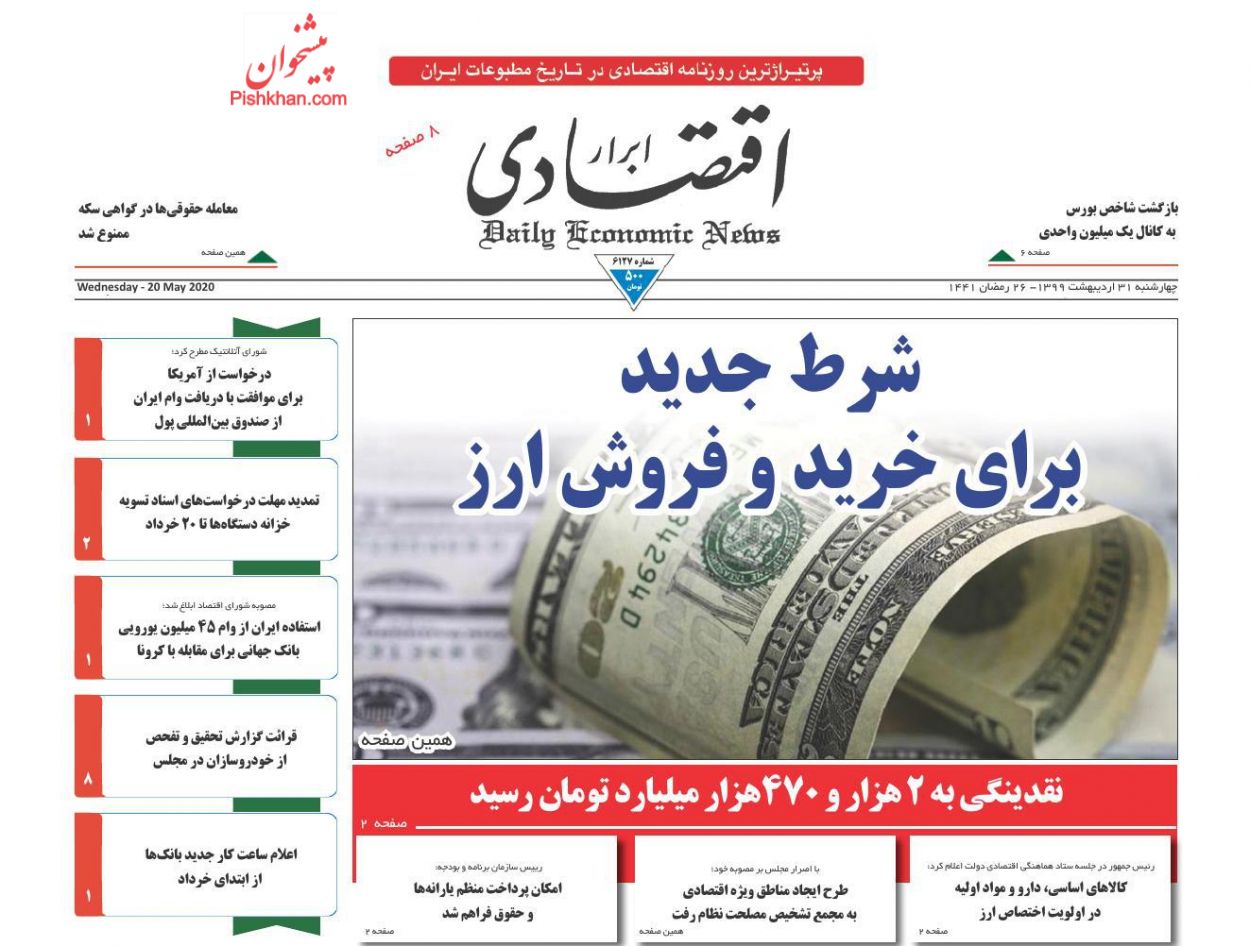 روزنامه های اقتصادی امروز به مسائلی همچون شرط جدید برای خرید و فروش ارز، بازگشت شاخص بورس به کانال یک میلیون واحدی، اعلام رقم جدید نقدینگی کشور و ممنوع شدن معامله حقوقی ها در بورس طلا پرداختند.