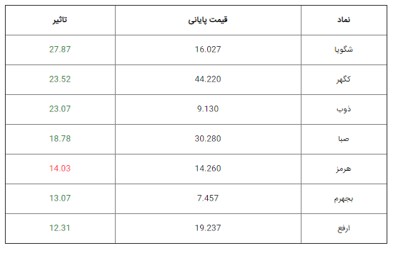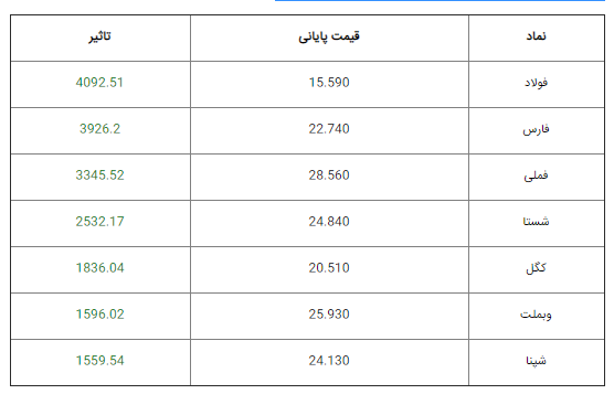 تاثیرگذارترین نمادهای بورس را میتوانید در جدول زیر مشاهده کنید: